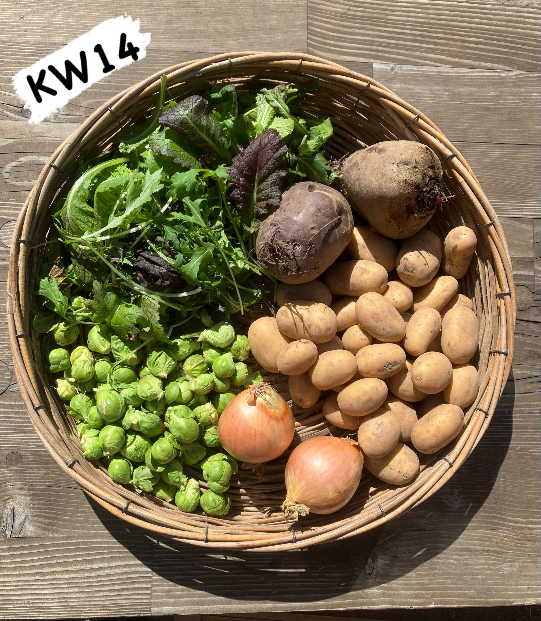 Dazu saisonal unser selbst angebautes Gemüse, Eier eigener Doppelnutzungs-Hühner, Molkereiprodukte aus der Milch von unseren Kühen aus Weidehaltung, Wurst und Fleisch von Rind, Schwein und Huhn aus unserer Landwirtschaft und frische Bio-Backwaren aus Bornhorst.