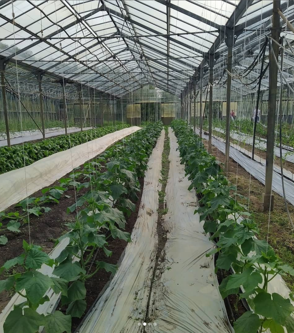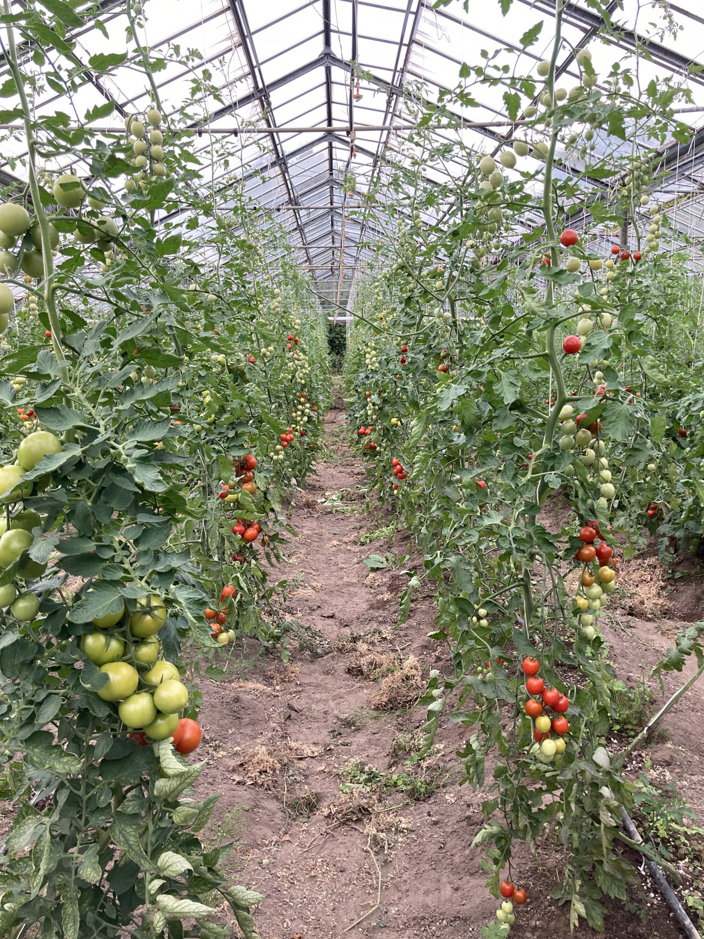 Die Gärtnerei bewirtschaftet aktuell ca. 2,15 ha. Wir haben ein großes Glasgewächshaus und einen Folientunnel, welche zusammen eine Fläche von ca. 0,15 ha Fläche haben. Außerdem gibt es ein Anzuchthaus, worin wir zeitweise auch selbst Pflanzen anziehen.
