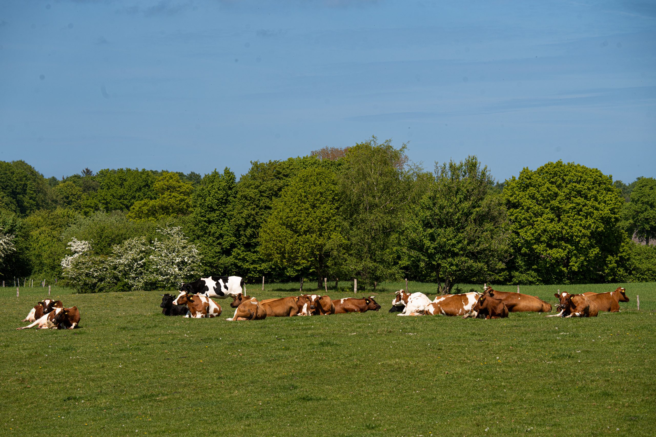 Auf Hof Sophienlust haben wir derzeit 30 Milchkühe der Rasse Rotbunt Doppelnutzung, zwei Zuchtbullen und etwa 70 männliche und weibliche Jungtiere, die bei uns aufgezogen werden.