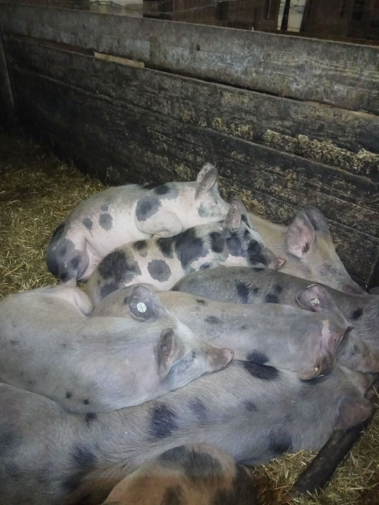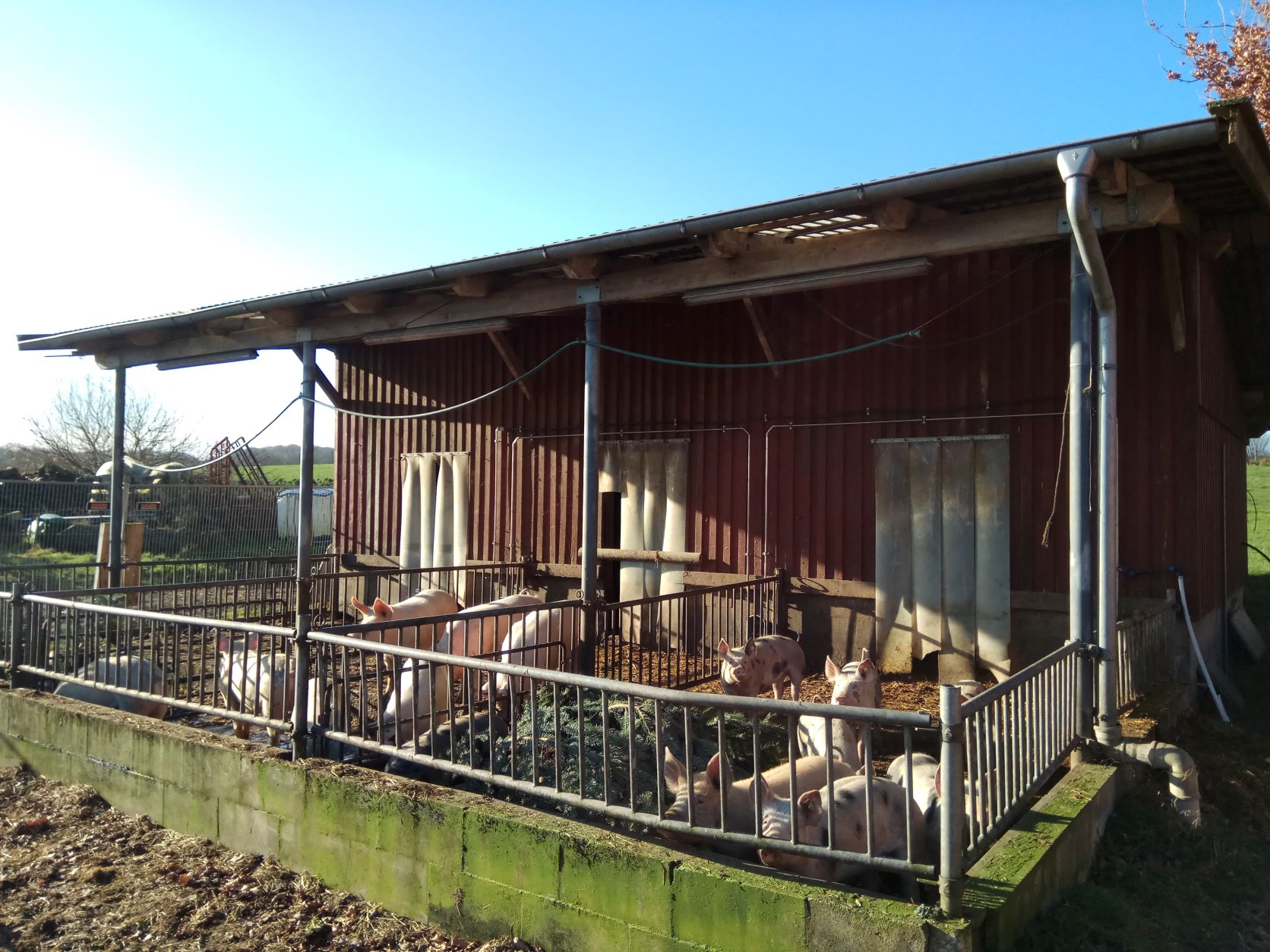 24 Schweine können in unserem Stall gehalten werden. Der Stall wird regelmäßig mit frischem Stroh eingestreut und sie haben die Möglichkeit, jederzeit in den Außenbereich zu gehen.