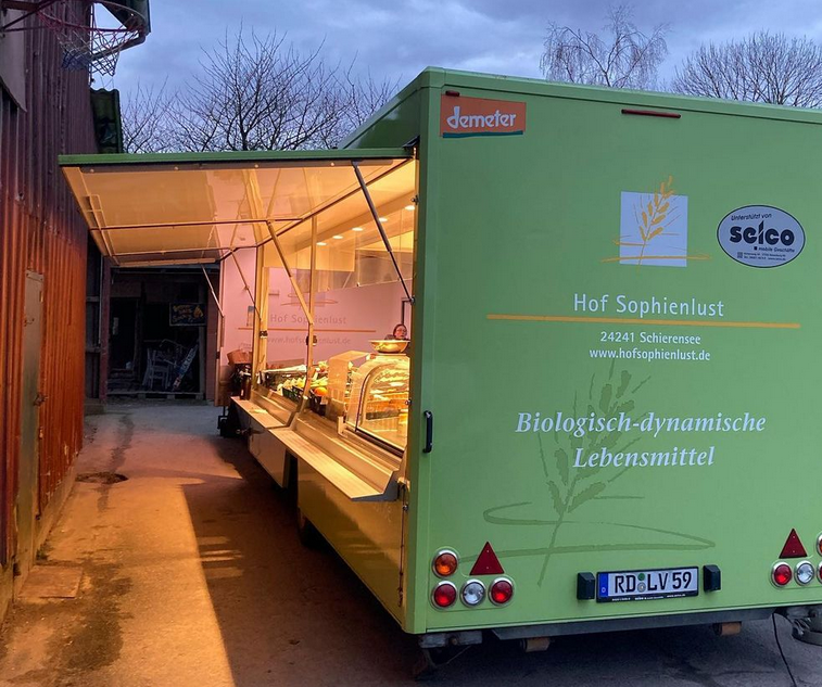 Der Verkauf aus unserem Marktanhänger heraus geht an der Waldorfschule Kiel weiter!